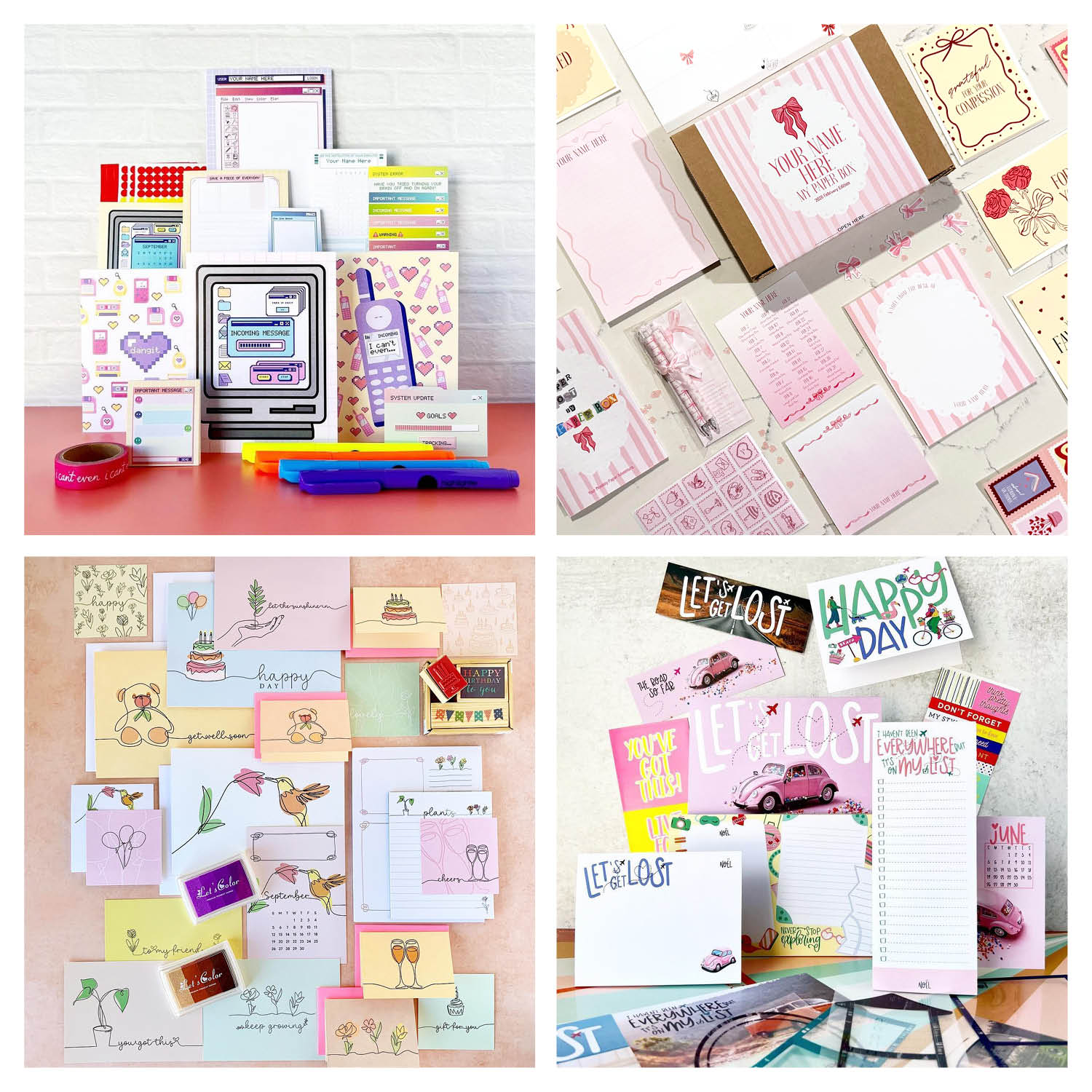 Every month brings a brand-new theme designed exclusively for subscribers. Your box includes personalized notepads, coordinating cards, stickers, and colorful paper pieces that match the month’s vibe. No two months are the same—it's a surprise designed to spark joy.