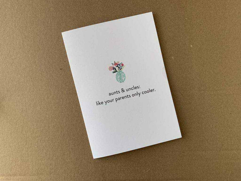 Printed on premium, white heavy cardstock. Card measures 5" by 7" inches folded (A7) with a message blank inside. Each card includes a 5 1/4" x 7 1/4" inch A7 white envelope for your card. Cards individually wrapped in a protective cellophane sleeve.