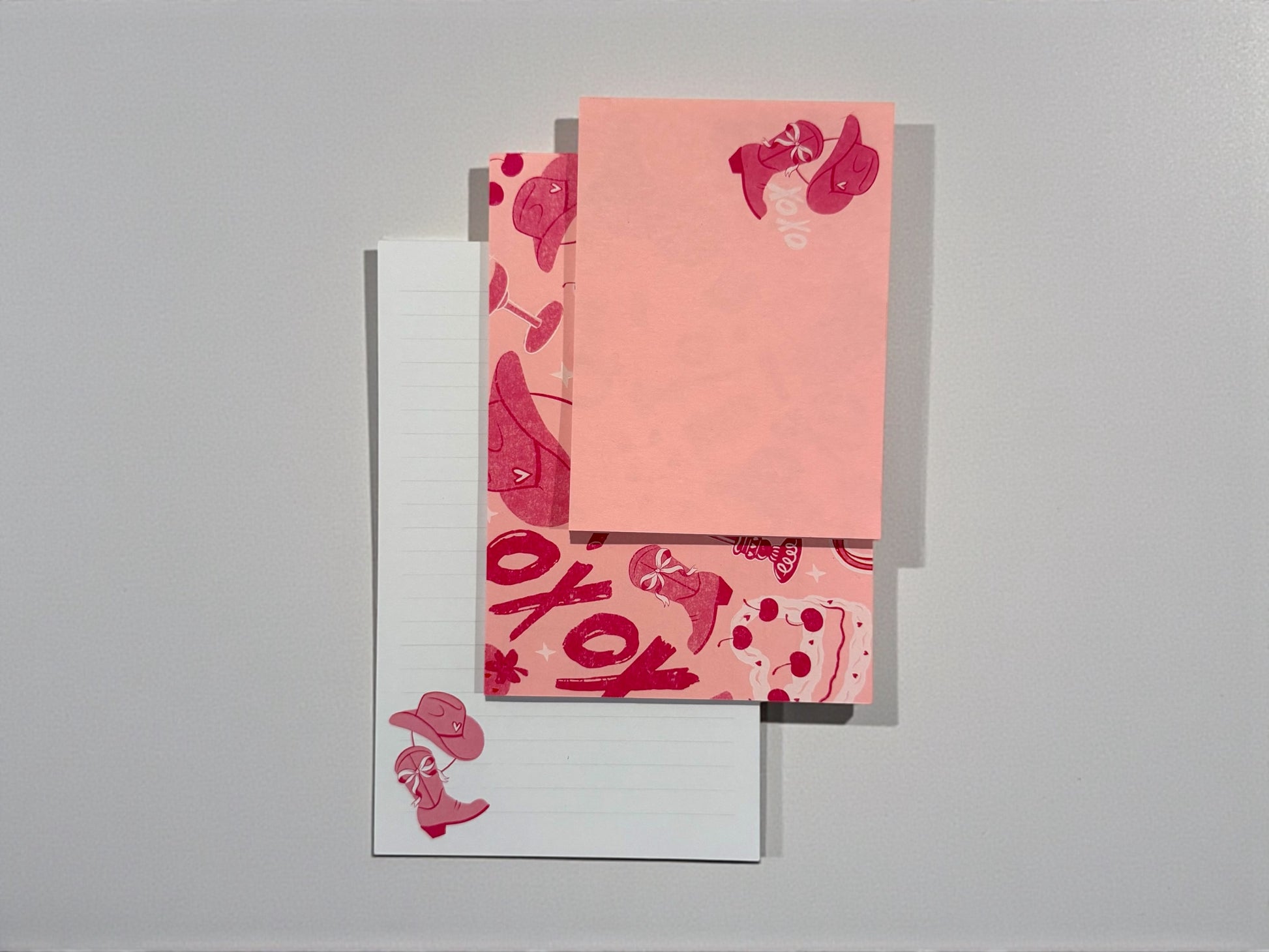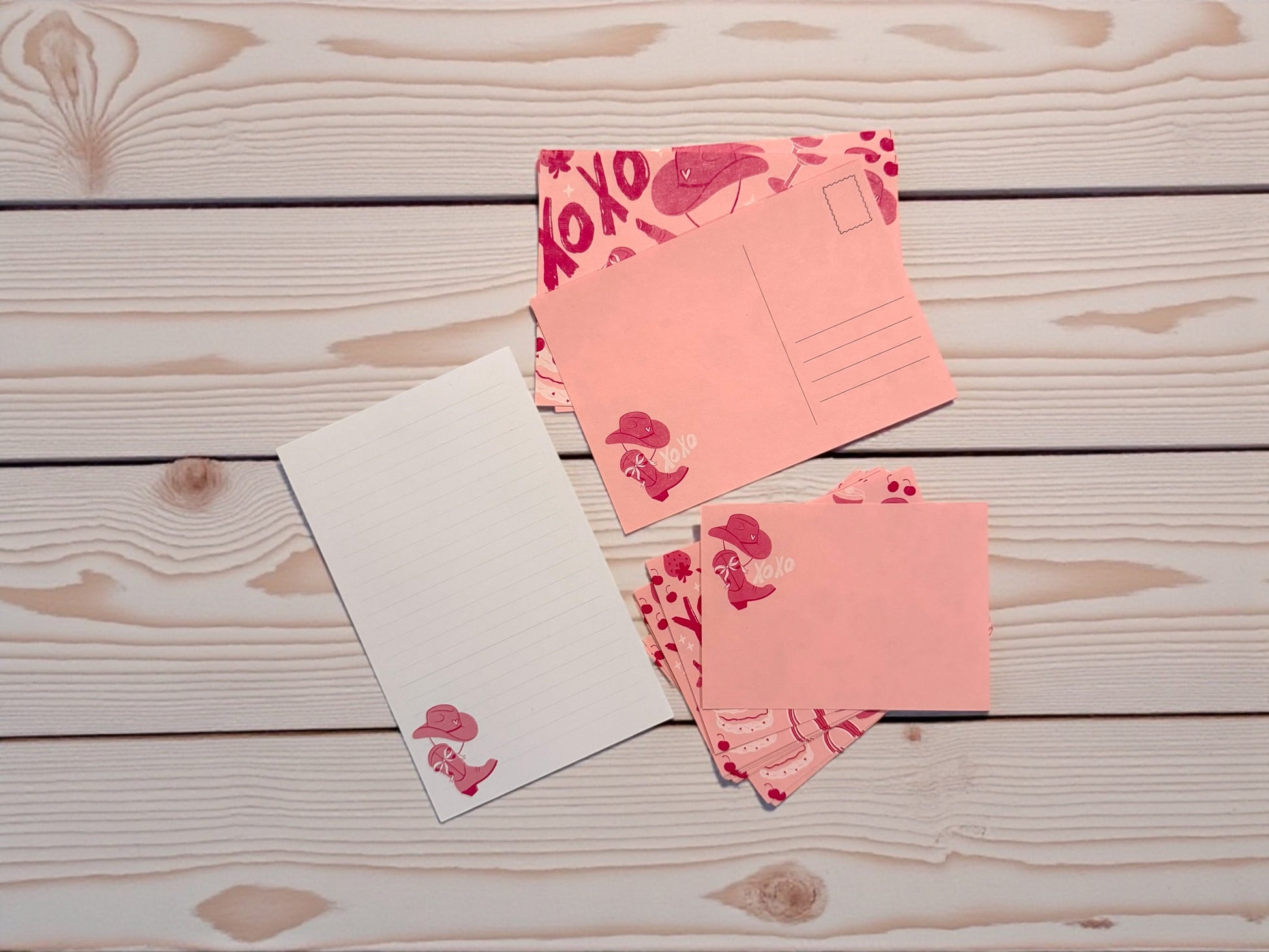 Each piece is designed in coordinating pink tones with the same charming cowgirl boot + hat illustration, making the whole set feel fun, flirty, and perfectly put-together. Whether you're sending love notes, thank-you messages, or just-because mail, this set brings a smile every time.