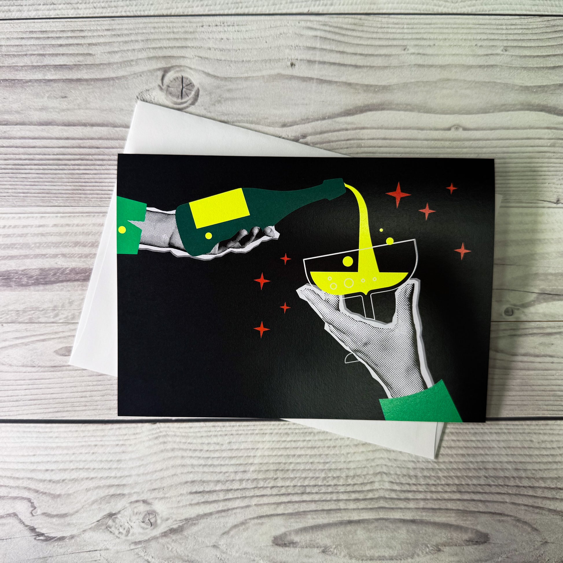 Printed on premium, white heavy cardstock. Card measures 5" by 7" inches folded (A7) with a message blank inside. Each card includes a 5 1/4" x 7 1/4" inch A7 white envelope for your card. Cards individually wrapped in a protective cellophane sleeve. * Limited Edition * Printed with Neon Yellow toner.